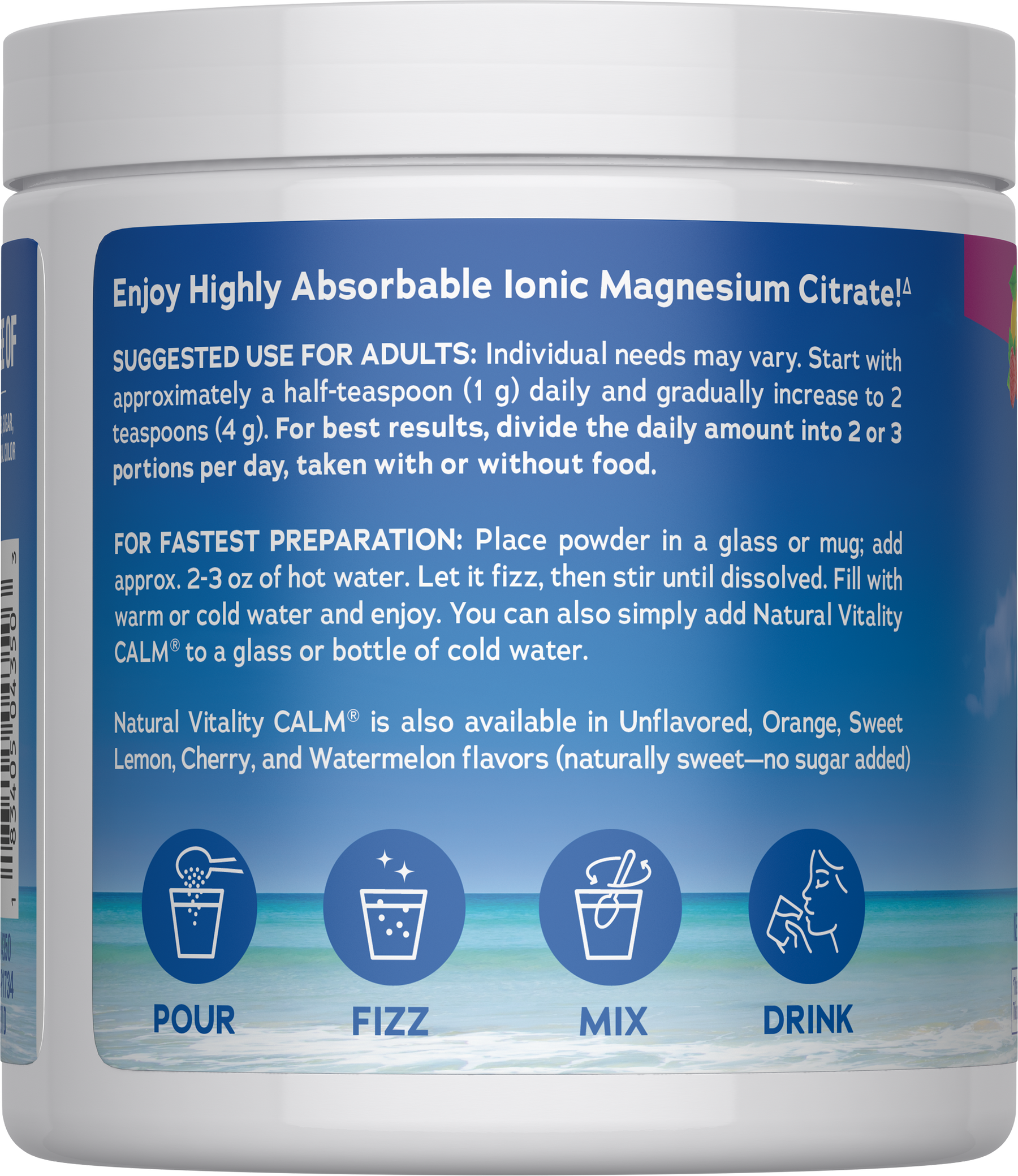 CALM Raspberry-Lemon es una fórmula creada para descansar. Polvo con sabor a frambuesa-limón que, al disolverse en agua tibia, libera magnesio en forma iónica de alta absorción.