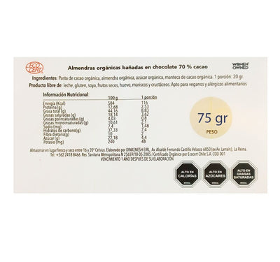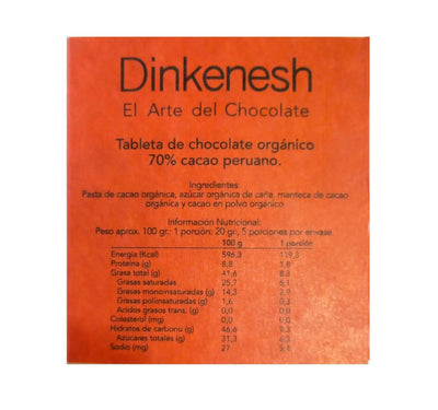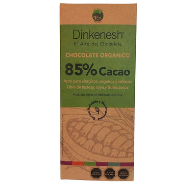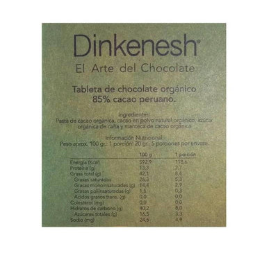 Barra de chocolate organica 85% de cacao, elaborada con granos de cacao peruano, profundamente deliciosa !! Libre de leche, soya, gluten, frutos secos.