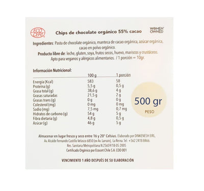 Chips de Chocolate 55% Cacao Dinkenesh 500 Gr