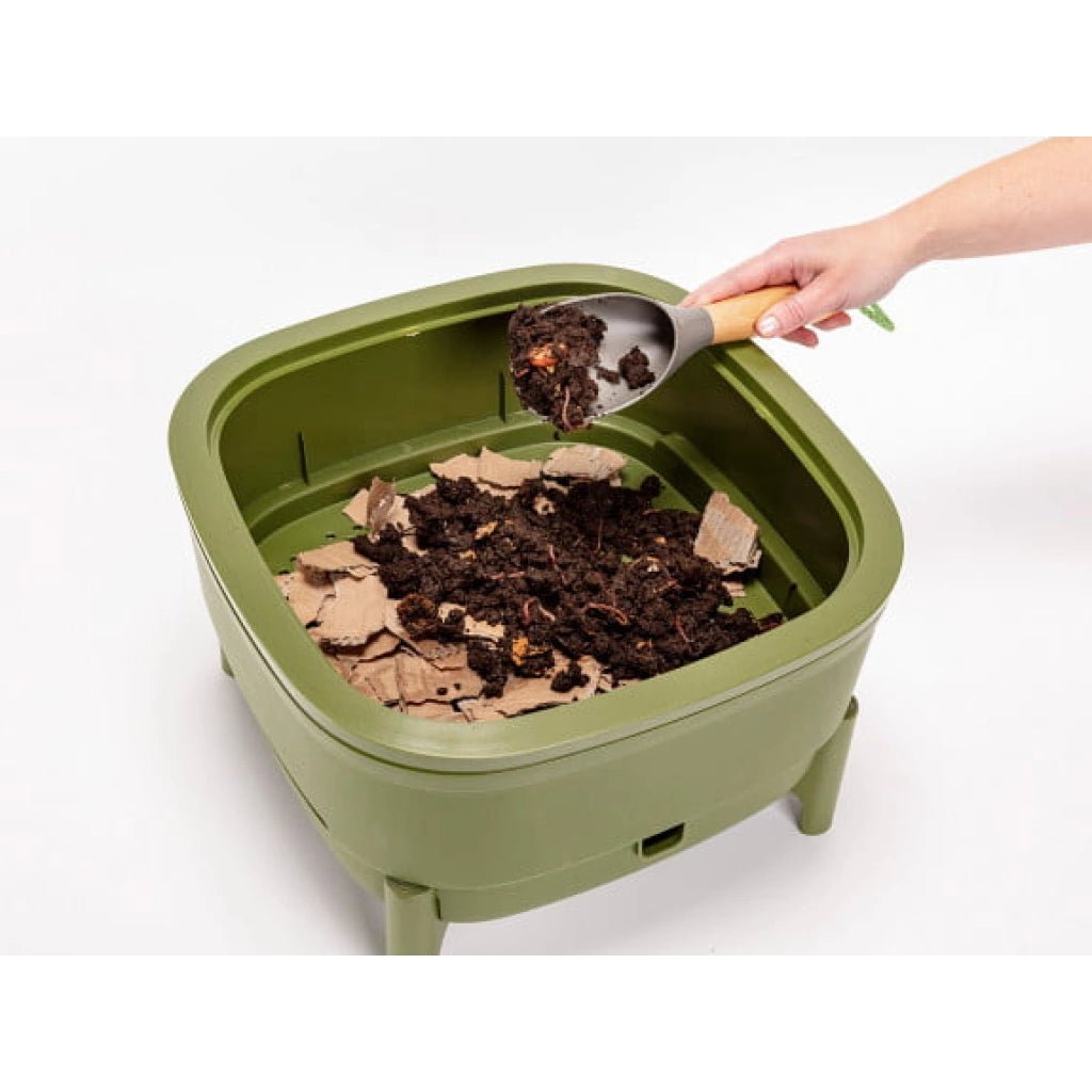 La vermicompostera es un contenedor de interior en el que las lombrices se encargan de transformar los desechos orgánicos del hogar en vermicompost y té de lombriz. De esta manera, obtendrás un abono 100% orgánico de alta calidad para tus plantas, tanto de interior como de exterior. Además, te sorprenderá su tamaño compacto, ya que encontrarás un lugar para ella incluso en la cocina más pequeña.