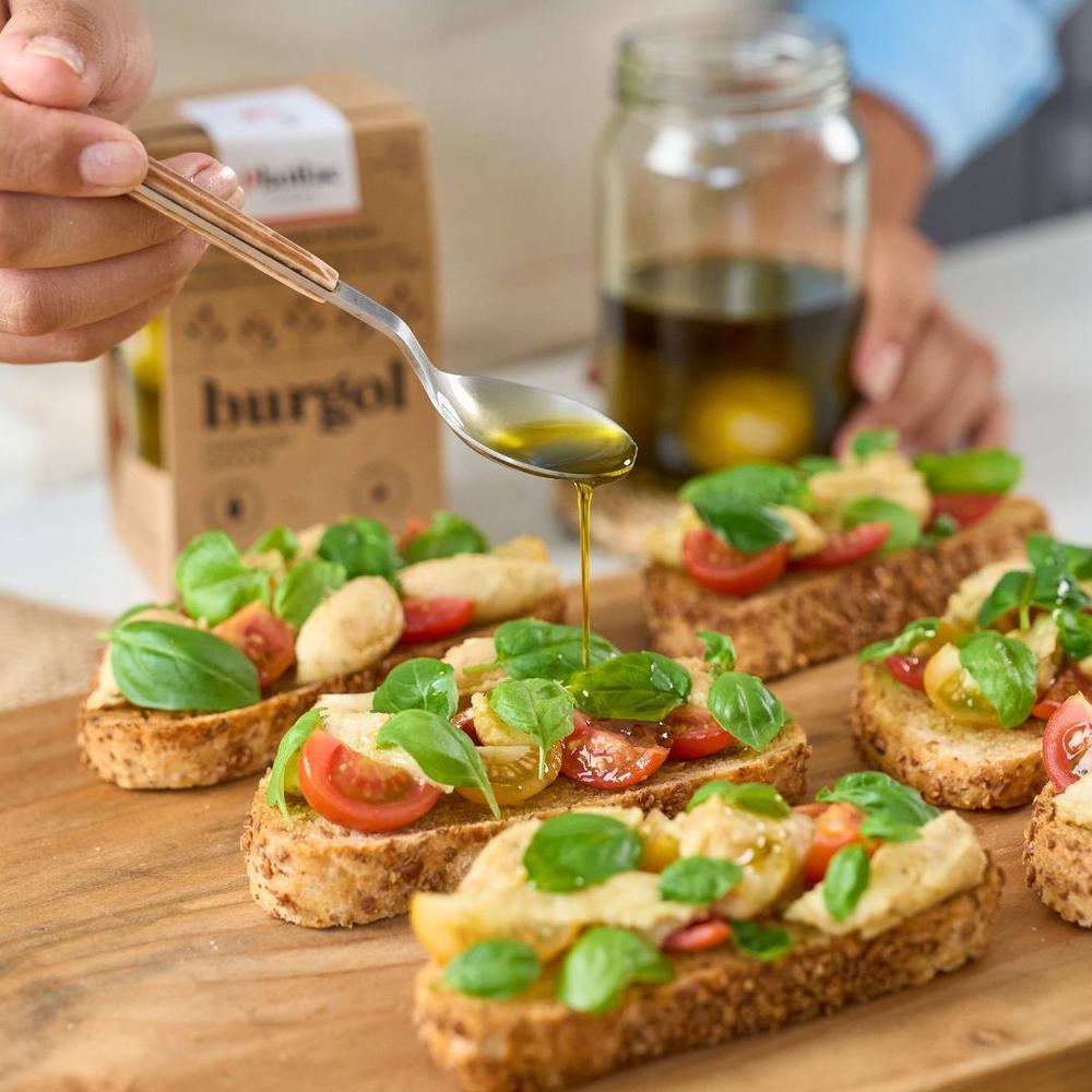 Burgol Fermented Ch**se, es un queso vegetal elaborado a partir de trigo fermentado, donde además añadimos bacterias probióticas para potenciar tu salud digestiva.