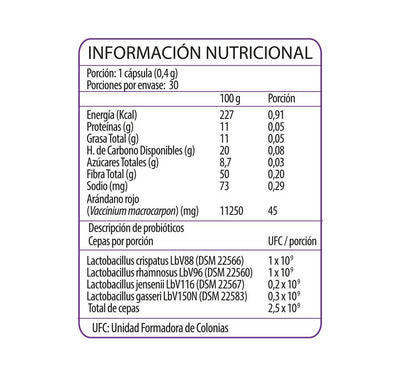 Probiótico multicepa diseñado para uso diario. Contiene 2 cepas identificadas y respaldadas en sus efectos benéficos en 5 billones de Unidades Formadoras de Colonias (UFC) que contribuyen a mantener el equilibrio de la flora intestinal y regular el tránsito intestinal.