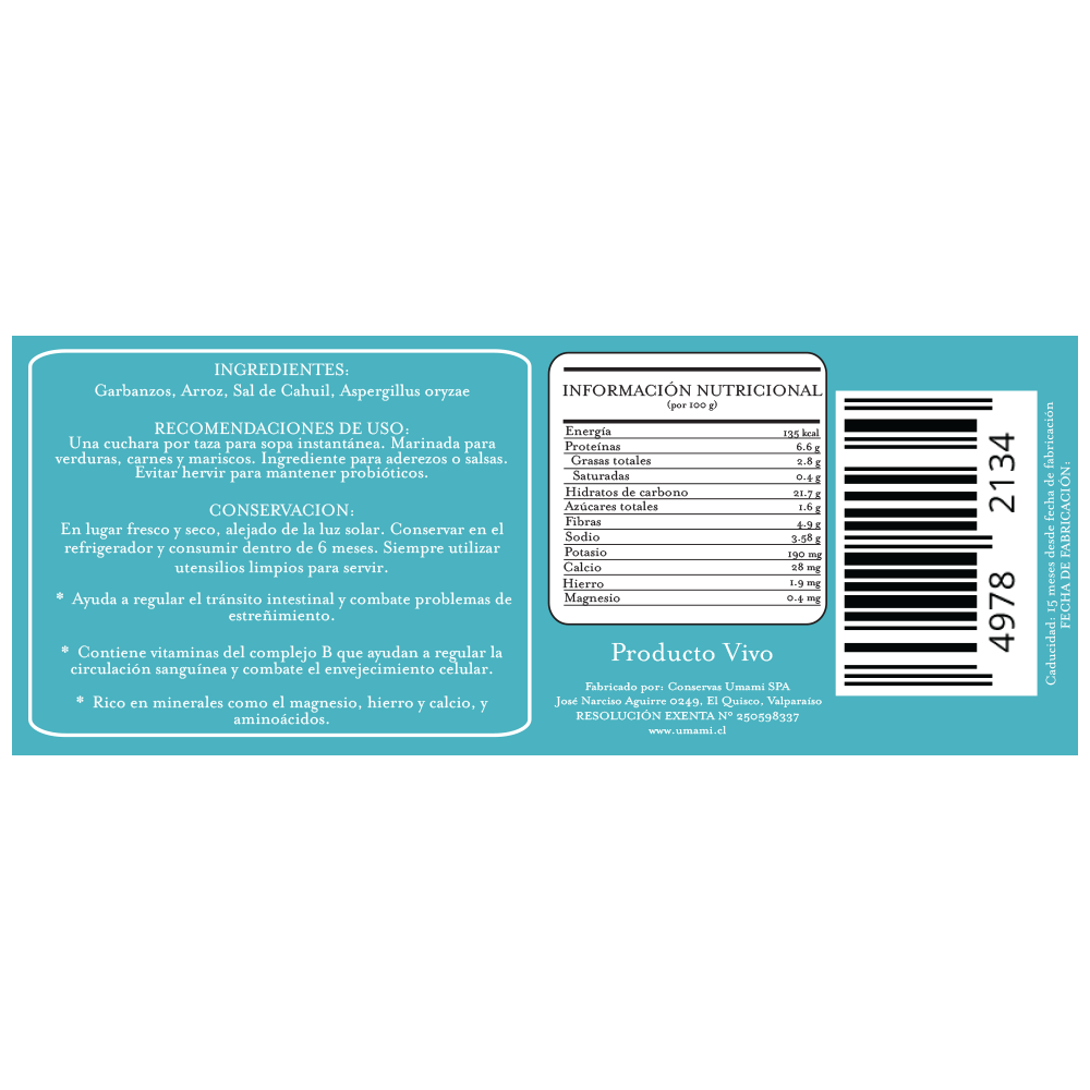 Una versión innovadora del miso, hecho con garbanzos y koji. Más suave y dulce que el tradicional, perfecto para quienes buscan un sabor único y sin gluten. Además, es una fuente natural de probióticos y enzimas vivas que enriquecen tu alimentación.