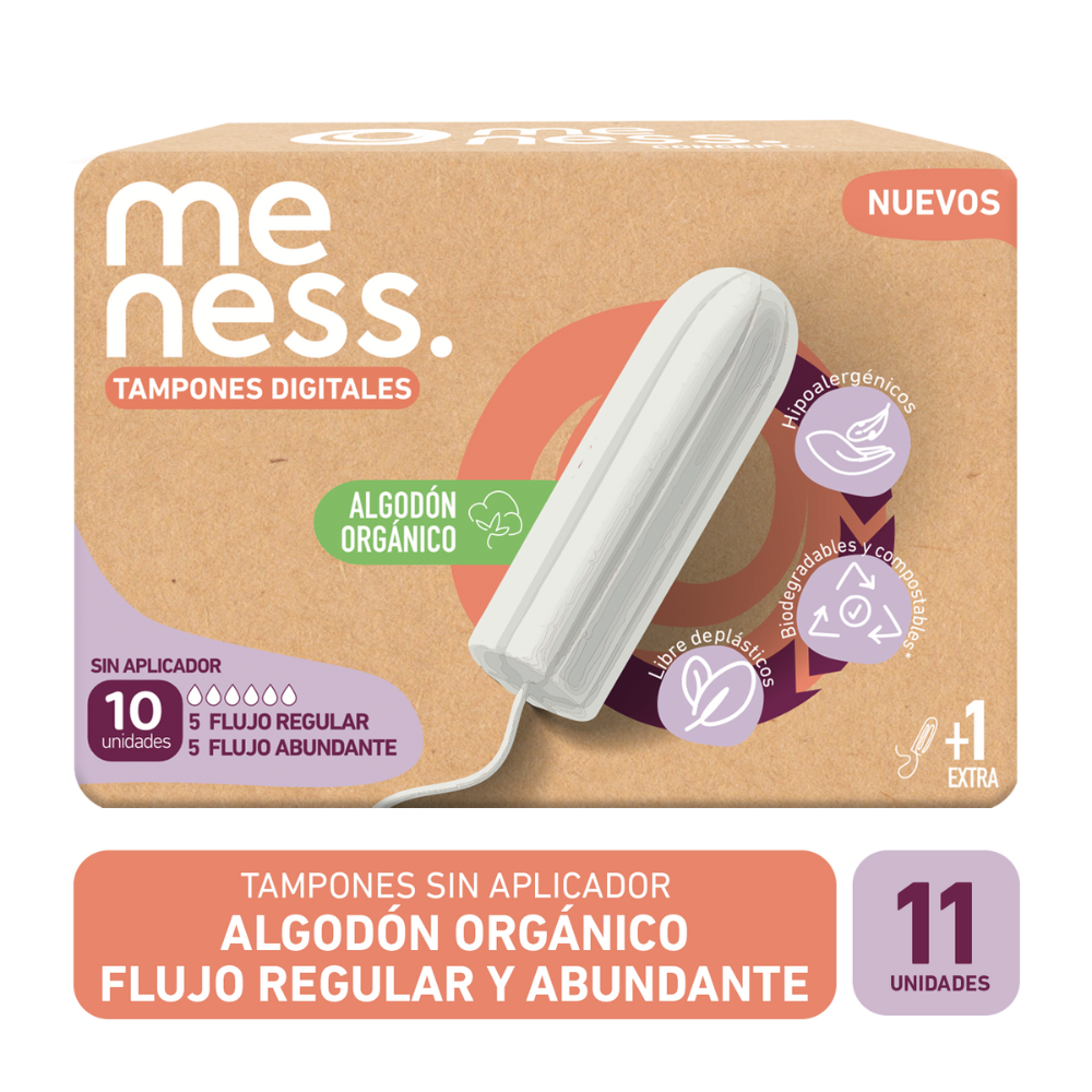 Tampones Digitales o Dáctiles Meness 11 unidades. Sin aplicador. Vienen 5 para flujo abundante y 6 para flujo regular, o sea el mix perfecto!