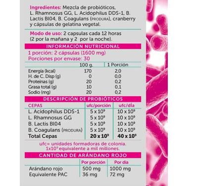 Dosis diaria: 4 cápsulas diarias, 2 en horario AM y 2 en horario PM.